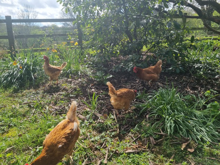 We regularly have little feathered visitors from next door, and the chickens are beautiful. Proper showstoppers. Bought as pullets at point of lay, they have a wide stretch of meadow to roam and a gorgeous stable to roost and nest in. They are well cared for, well fed, and genuinely want for nothing.