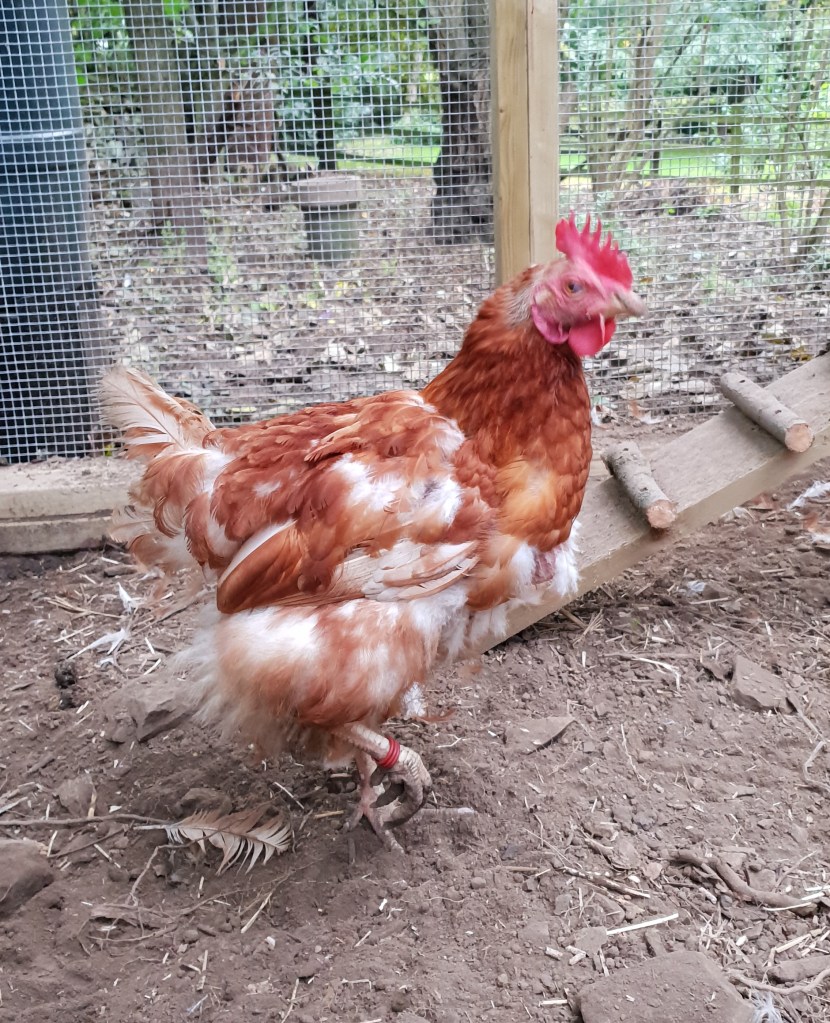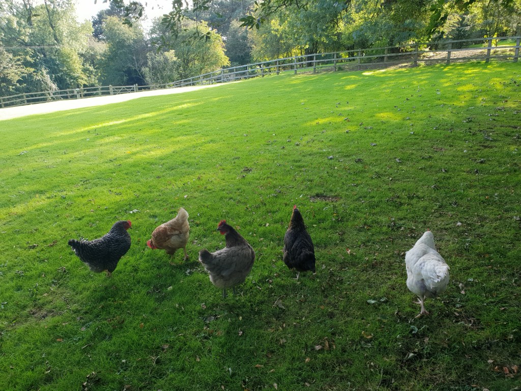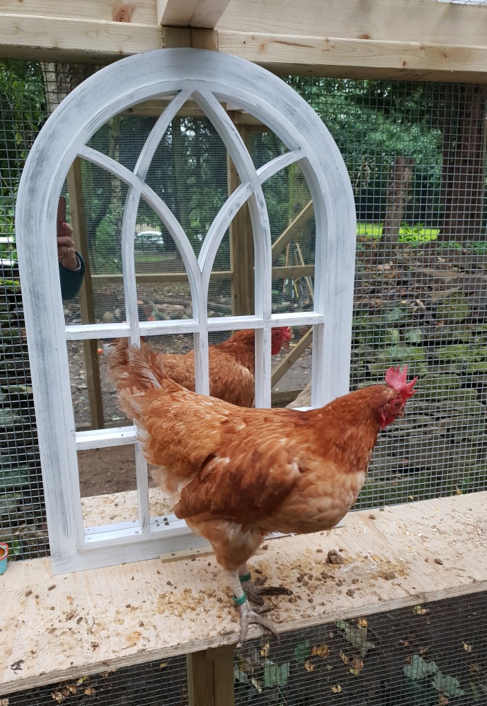 Their combs are pale and floppy, their plumage is patchy, but their eyes are bright. When we first put them in the run they just stood together, not moving at all. Absolutely everything, from the sand on the floor, to the space, the feeders, the sounds, the smells, the temperature, it’s all completely new. They have never felt anything like this in their short lives, it must have been a complete assault on their senses and they were utterly overwhelmed.
