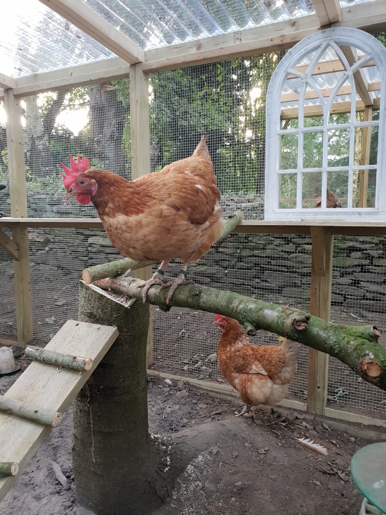 Creeping back for a maternal check an hour later, (with extra treats), the girls had started looking around and pecking at things (in my head it’s the equivalent of toddlers putting everything in their mouths). At dusk, they took themselves into the coop and lined up on the roost bars. (Very proud mama moment).