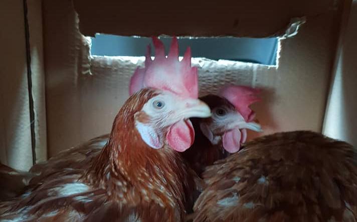These birds have been kept in a cage since they were of an age to produce eggs, at least a year, they haven’t known any kindness from the humans around them and have been kept in a constant temperature with artificial lighting.