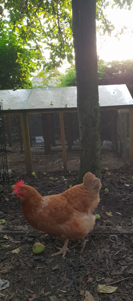 Each time she raced back down, clearly irritated that I wasn’t understanding what she was telling me. In time she will get used to her larger, more luxurious surrounding, but at the moment all my little chicken wants is what she is used to.